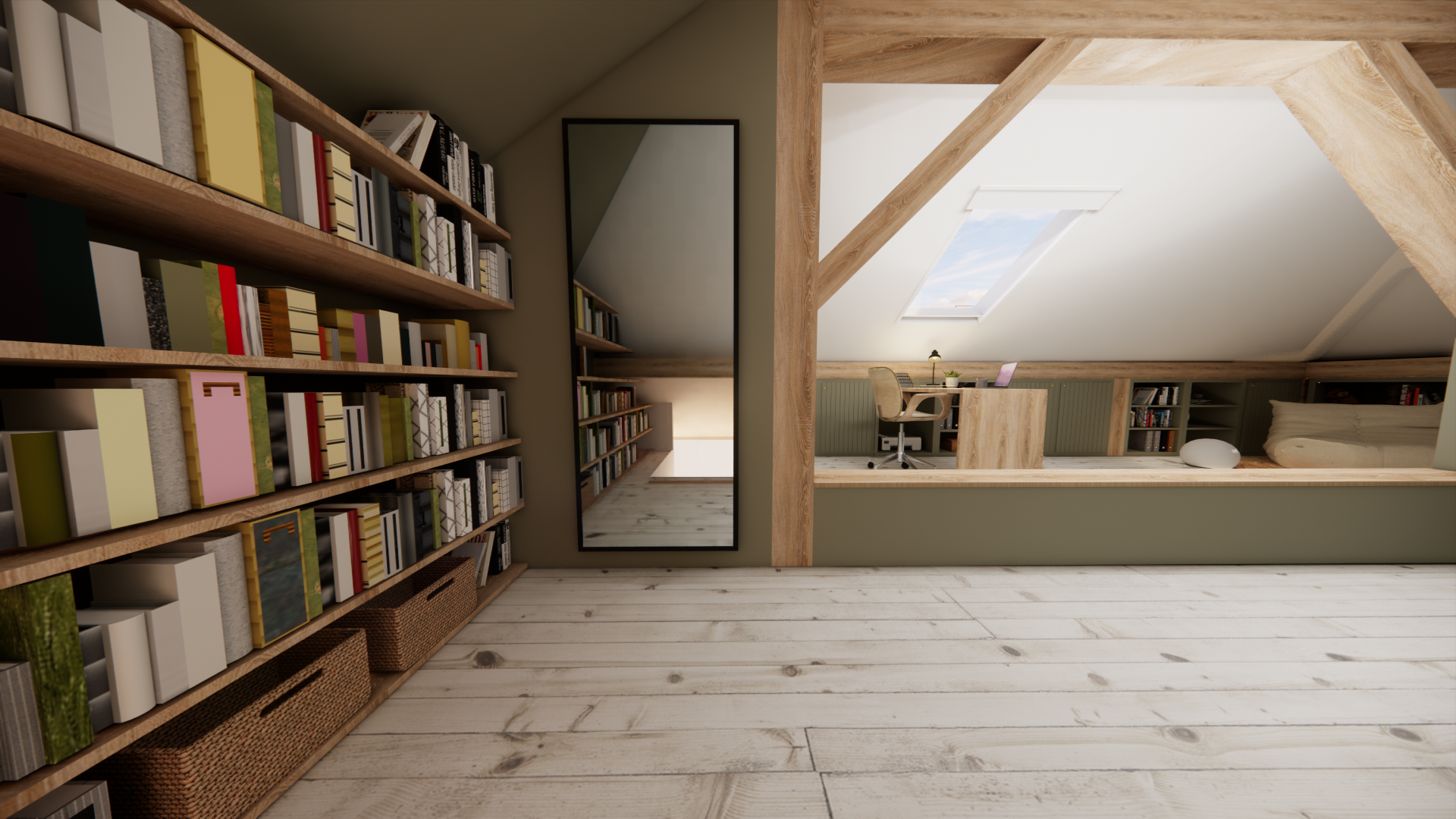 Pour ce projet, nous avons eu le plaisir d’accompagner nos clients dans la rénovation complète de leur grenier sur Mons afin d’y aménager la chambre de leur fils Alexandre. L’objectif : transformer cet espace en une véritable cabane, un refuge chaleureux et inspirant. Passionné de lecture, Alexandre rêvait d’un lieu où il pourrait s’isoler et s’évader dans ses livres.