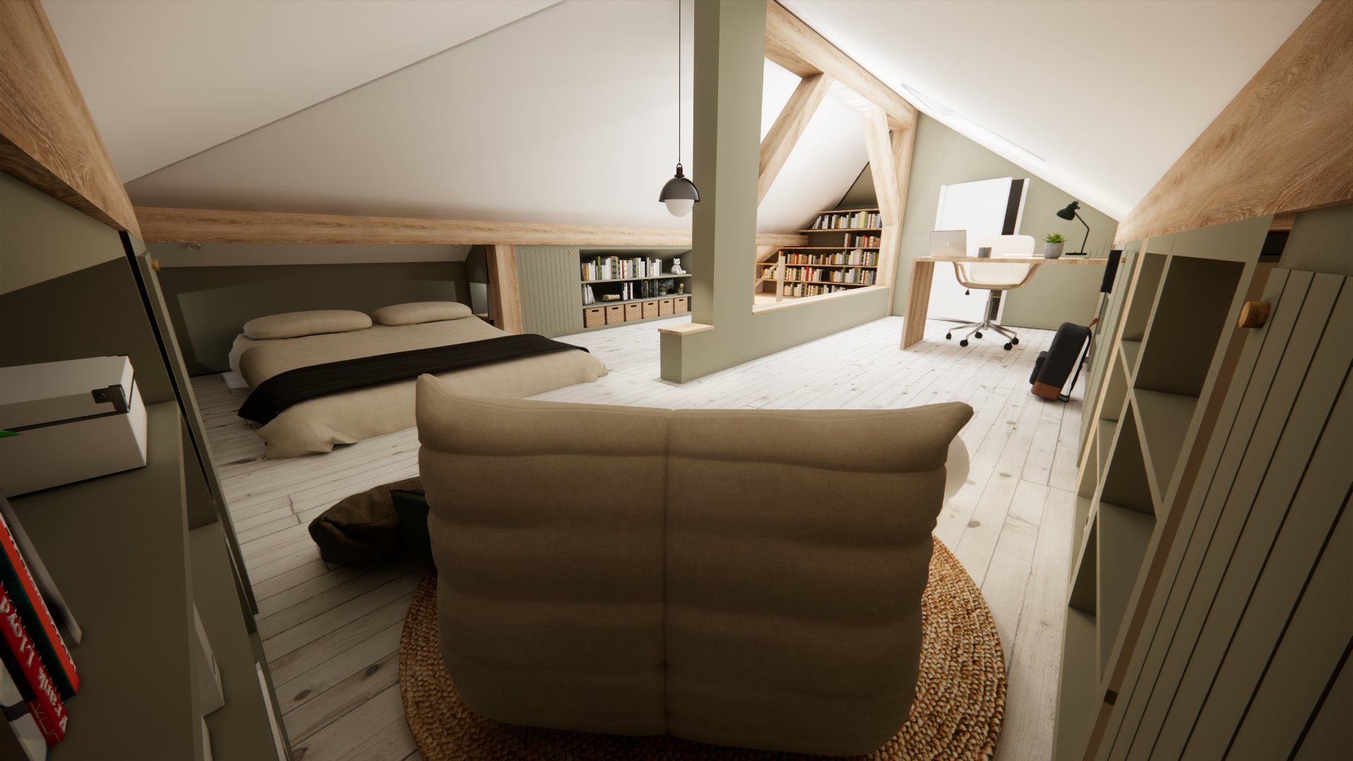 Ce projet illustre comment un grenier sombre peut devenir une chambre sur mesure, intime et apaisante, pensée pour accompagner un adolescent dans son quotidien. Et maintenant que le rendu 3D est réalisé, le projet est en cours d’exécution. Nous leur souhaitons beaucoup de bonheur dans ce nouvel espace de vie.
